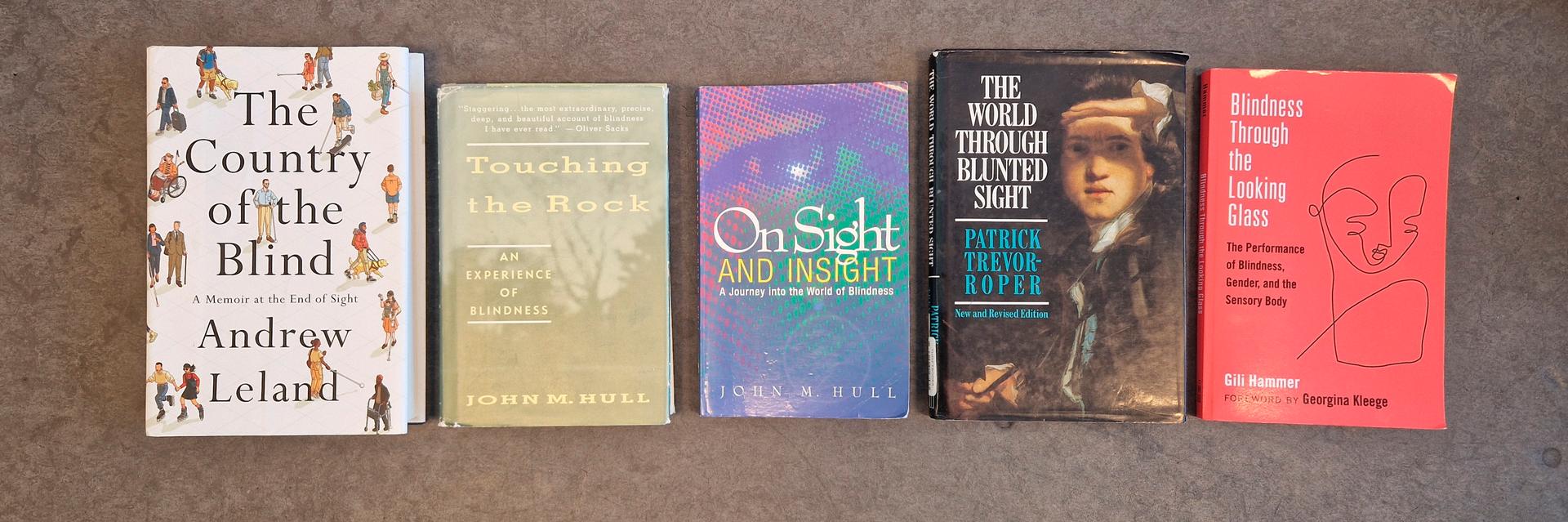 Gennem fire forfattere, Andrew Leland, John Hull, Patrick Trevor-Roper og Gili Hammer, vil vi i en artikelserie præsentere de hovedpointer og perspektiver som deres bøger bidrager med til vores forståelse. De to første har selv oplevet synstabet, den tredje beskriver funktionsnedsættelsen i kunsten, mens den sidste deler som forsker sin oplevelse og forståelse af identitet og relationer blandt en gruppe blinde kvinder.